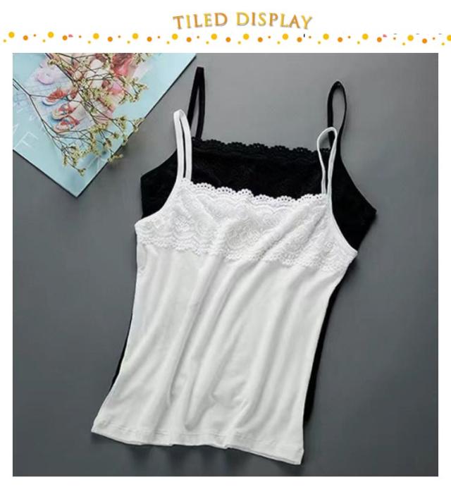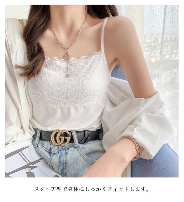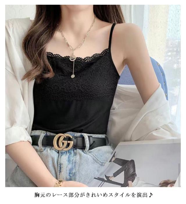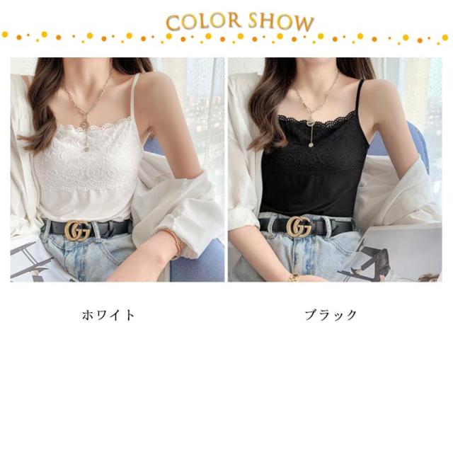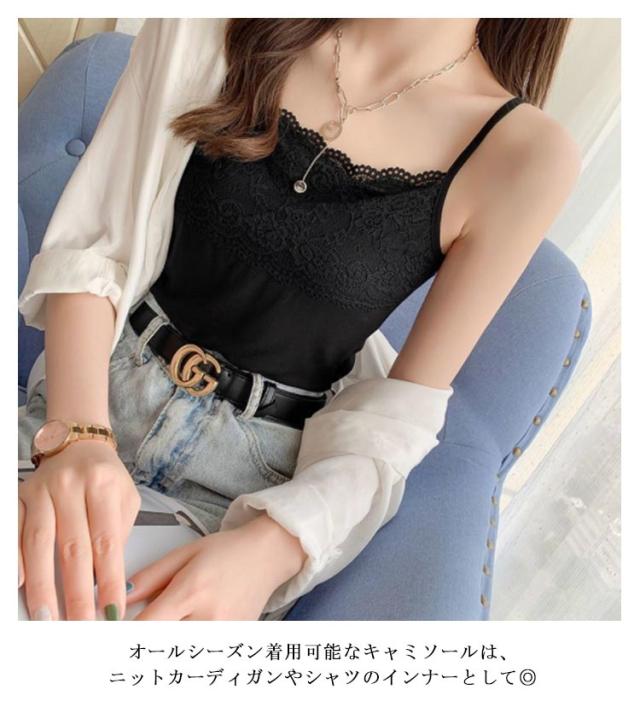 送料無料 胸元レース 伸縮性 インナーキャミ インナー レースキャミソール ストレッチ レースキャミ カップなし 細ストラップ フィット キャミソール レディース 下着 透けない おしゃれ かわいい 白 送料無料 レース 黒