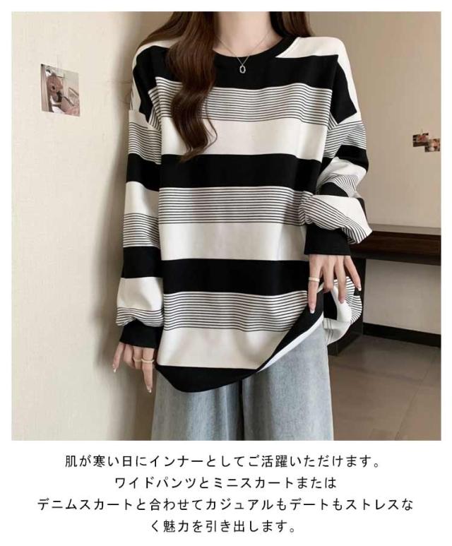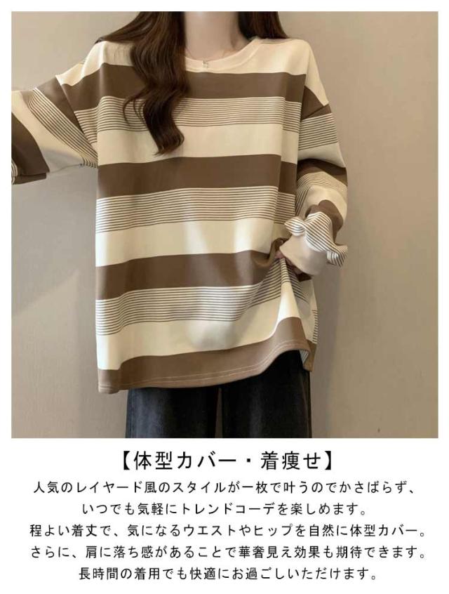 | 【お洒落なデザイン】トレンド人気の重ね着風スタイルが1枚で完成する。ラフに着られるゆったりシルエットで、カジュアルコーデに欠かせない一枚に仕上げました。春秋と初夏シーズンには毎日でも着回せそうな使いやすさが魅力的。カジュアルな中にも女性らしさが漂う、スポーティーエレガントな印象。 【体型カバー・着痩せ】人気のレイヤード風のスタイルが一枚で叶うのでかさばらず、いつでも気軽にトレンドコーデを楽しめます。 程よい着丈で、気になるウエストやヒップを自然に体型カバー。 さらに、肩に落ち感があることで華奢見え効果も期待できます。 長時間の着用でも快適にお過ごしいただけます。 【着まわし力抜群】簡単なストライプのデザイン、淡めカラーから深めカラーまで相性良く合わせられるので、季節に合わせた着こなしを楽しめます。ワイドシルエットのパンツやシンプルなアクセサリーとの相性もGood!コーデの主役としてはもちろん、インナー使いでアクセントとしても使えて着まわし力抜群です。 【適用場合広い】ストライプな素材でコーデしやすく、シンプルで様々なシーンにご着用いただけます。カジュアルはもちろん、通勤、出張、デート、海外旅行、同窓会、二次会、結婚式様々な場合にご活躍いただけます。暖かい春と初秋に一枚だけでお洒落が決めます。肌が寒い日にインナーとしてご活躍いただけます。ワイドパンツとミニスカートまたはデニムスカートと合わせてカジュアルもデートもストレスなく魅力を引き出します。 | |