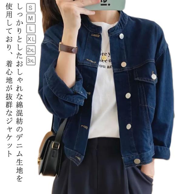 【送料無料】 デニムジャケット レディース デニム ノーカラー ジャケット デニム レディース 春 ショート丈 ノーカラージャケット gジャン レディース スプリング 長袖 ライトアウター 春コート上着 春服 プリングコート 通勤 カジュアル きれいめ 大人