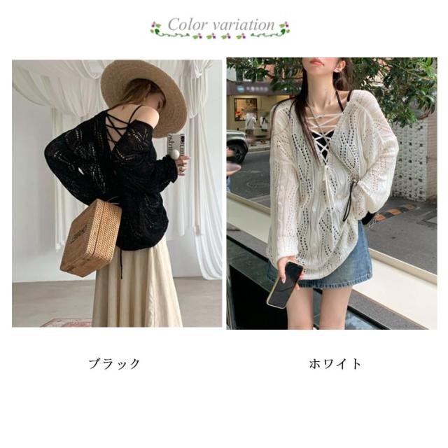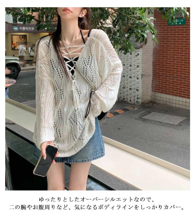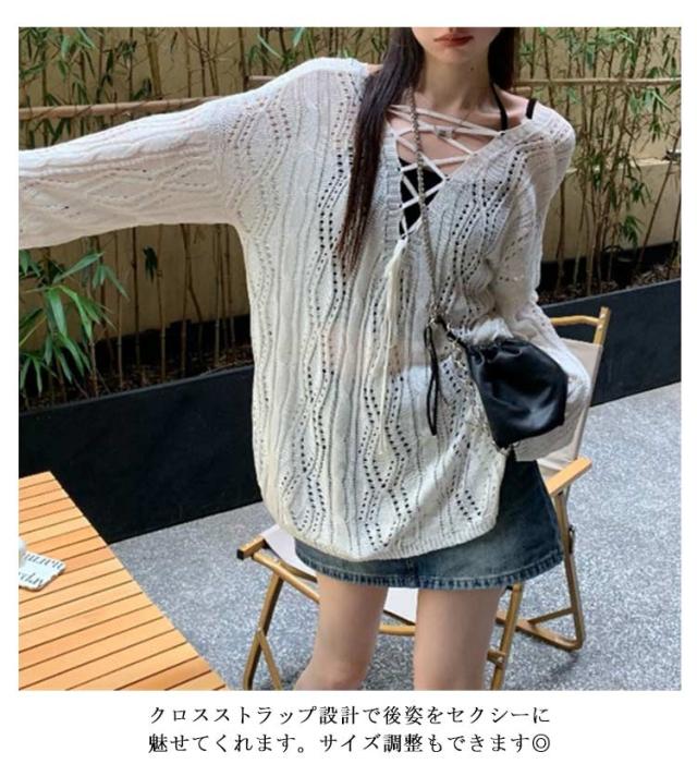 | 前後クロスストラップがセクシーでおしゃれなメッシュプルオーバー 立体感のあるケーブル編みが、シンプルなコーデも表情豊かに魅せます。 クロスストラップ設計で後姿をセクシーに魅せてくれます。サイズ調整もできます◎ ゆったりとしたオーバーシルエットなので、二の腕やお腹周りなど、気になるボディラインをしっかりカバー。 キャミワンピースの上から着たり、様々な表情が楽しめる旬の透かし編みワンピースです。 インナーに合わせるアイテムで雰囲気が変わるプルオーバー。 | |