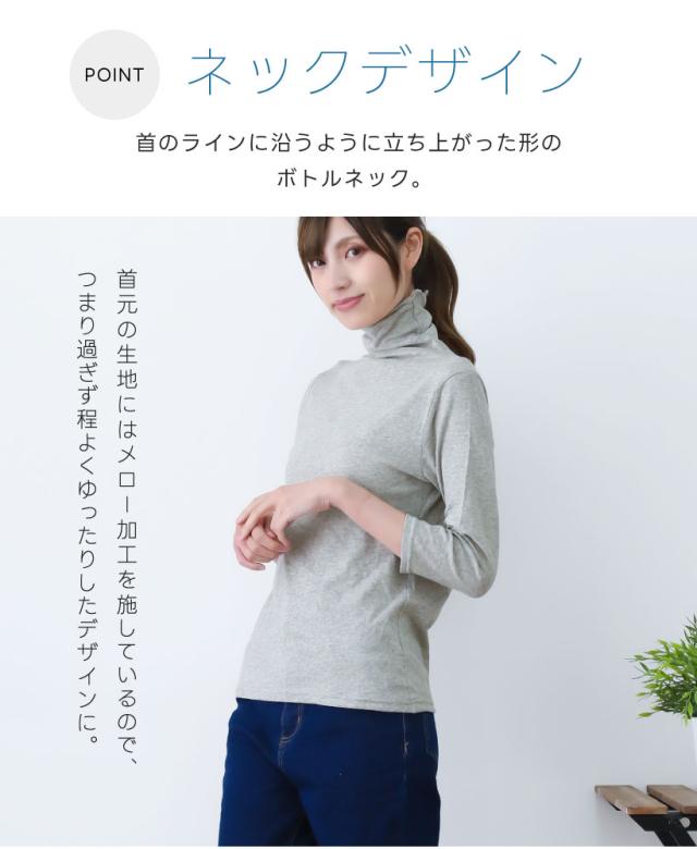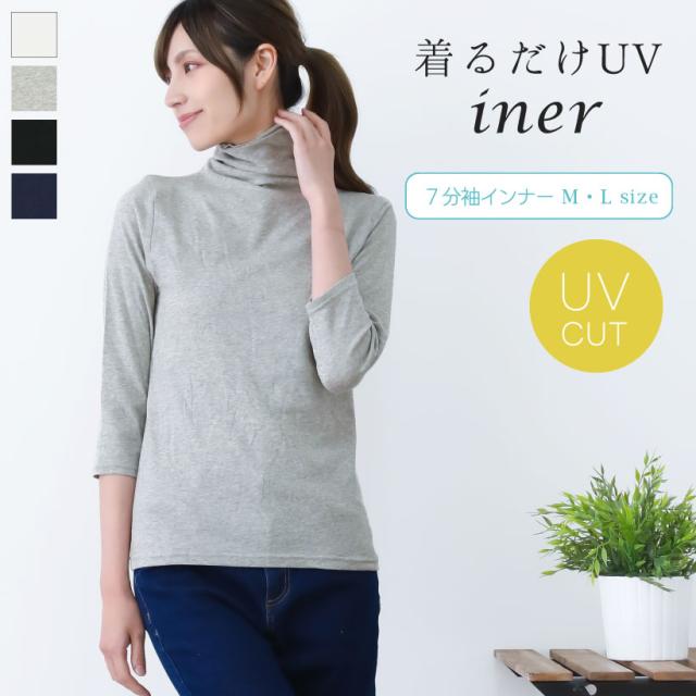 ファッションアイテムとしてコーデに溶け込む、UVカットの7分袖インナー。 UVカット加工を施した生地を使用している為、着ているだけでUV対策ができる優れもの。 ボトルネックなので、首元もしっかりと隠してくれます。春夏の強い紫外線も、おしゃれを味方にしっかり守ってくれます。