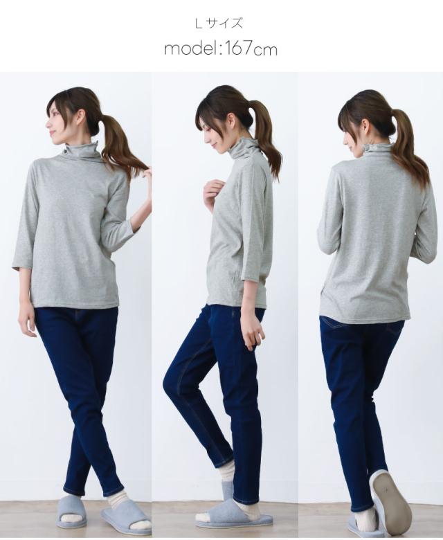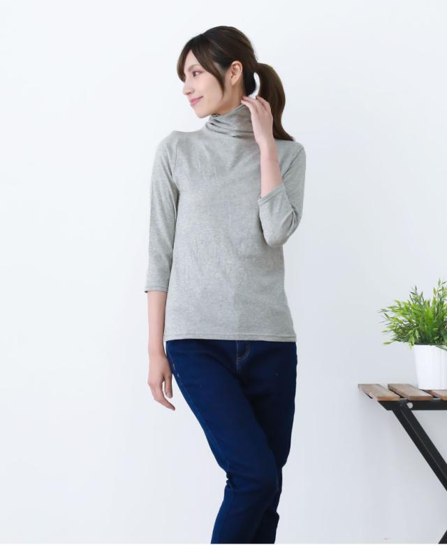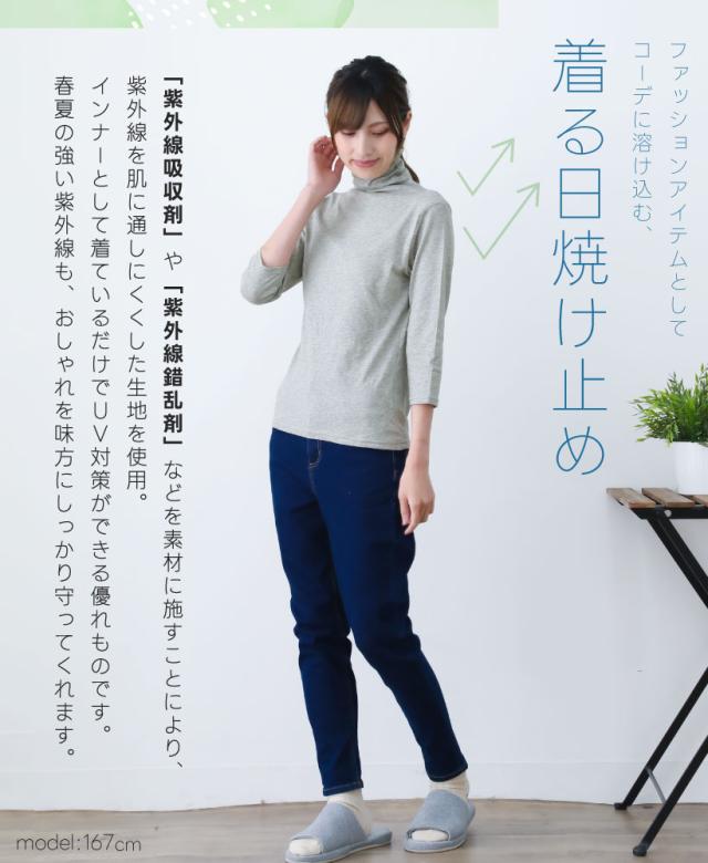 【メール便1枚のみ送料無料】UVカット ボトルネック7分袖Tシャツ レディース おしゃれ 紫外線対策 インナー トップス かわいい メロー加工【P】【M】