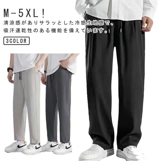 ワイドパンツ メンズ パンツ 接触冷感 夏 ストレッチ 涼しい 吸水速乾 チノパン 清涼 涼感 ズボン ゴルフパンツ ゴルフウェア アイスシルクパンツ ビジネス 細身 スリム テーパード ロングパンツ スポーツパンツ 大きいサイズ 無地 軽量 薄手 通気 送料無料