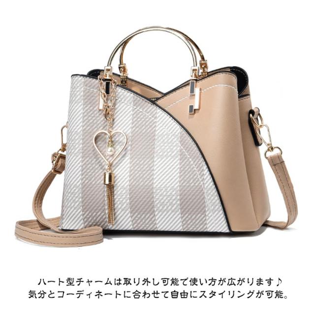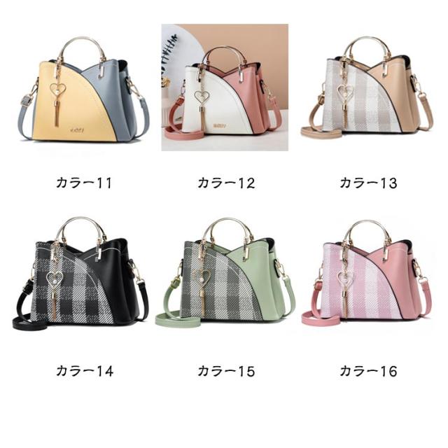 | 配色が印象的なハンドバッグ/ショルダーバッグ。 荷物を細かく仕分けて入れられるので、使いやすく便利。 ファスナーポケットやオープンポケットもついているので、小物もすっきり収納できます。 ハート型チャームは取り外し可能で使い方が広がります♪気分とコーディネートに合わせて自由にスタイリングが可能。 少しくすんだ落ち着いたバイカラーで、組み合わせによってかわいくレトロな雰囲気になっています。 リッチな印象を与えて、上品さを演出してくれるショルダーバッグです。 シンプルであきの来ないデザインで通勤・通学でも日常的にも幅広く使えるハンドバッグに仕上げました。 | |
