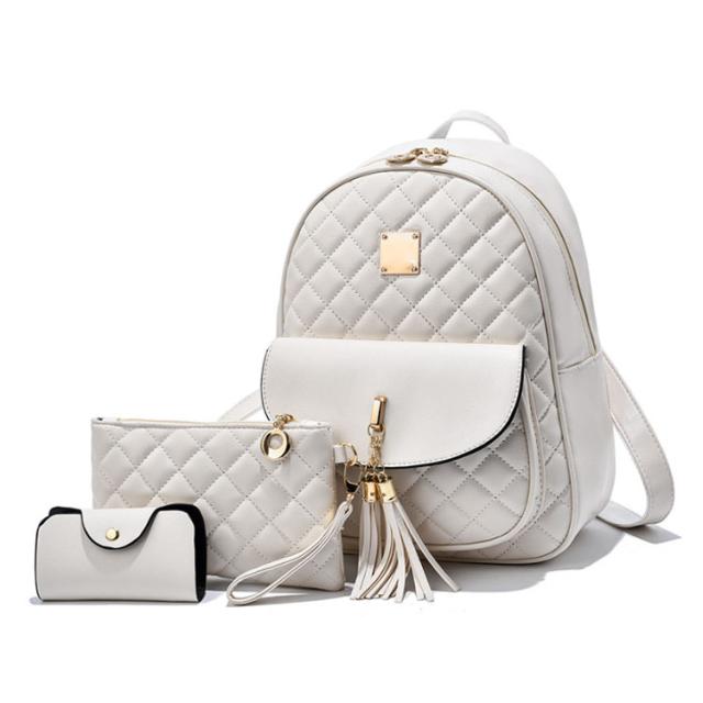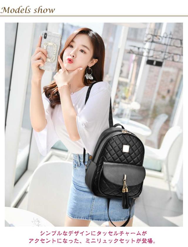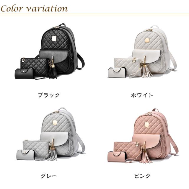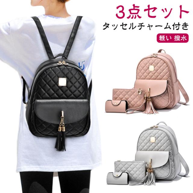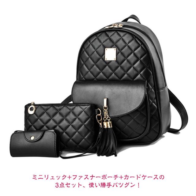 タッセルチャーム付き ミニリュック レディース ミニ リュック 3点セット ポーチ カードケース リュックサック 通勤 小さめ 軽い 撥水 コンパクト ミニリュック かわいい デイパック レザーリュック 合皮 通勤バッグ 通勤 通学 旅行