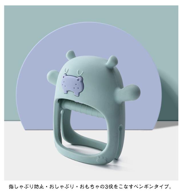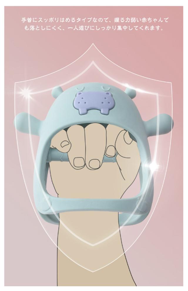 | 手首にスッポリはめるタイプ 【安全素材】 シリコンだから舐めても口に入れても大丈夫!柔らかくて、耐久性のあるおしゃぶりホルダー。 指しゃぶり防止・おしゃぶり・おもちゃの3役をこなすペンギンタイプ。 【手首で落ちにくい】手首にスッポリはめるタイプなので、握る力弱い赤ちゃんでも落としにくく、一人遊びにしっかり集中してくれます。 【指しゃぶり防止】 2種類の歯茎マッサージで、お子様のお好みによおって歯茎のむず痒さを緩和してくれます。 【お手入れ簡単】 煮沸・UV・食洗機で殺菌・消毒OK! | |
