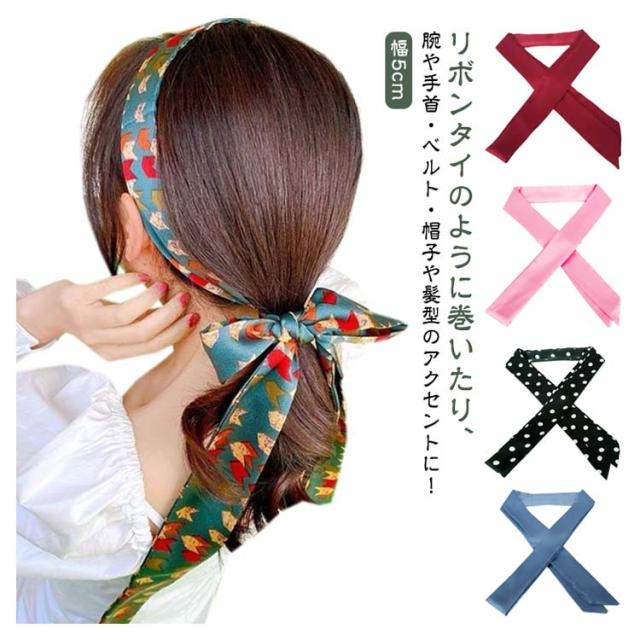 スカーフ ロング リボンスカーフ リボンタイ スカーフ 手結び 長さ195幅5cm レディース ボウタイブラウス風 無地 スリム 細スカーフ カバン 持ち手 バンダナト 髪飾り バッグ飾り ヘアターバン ヘッドアクセサリー おしゃれ かわいい