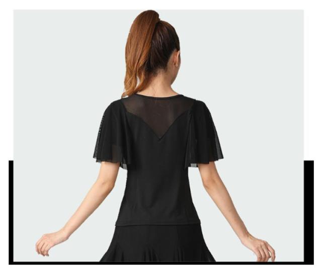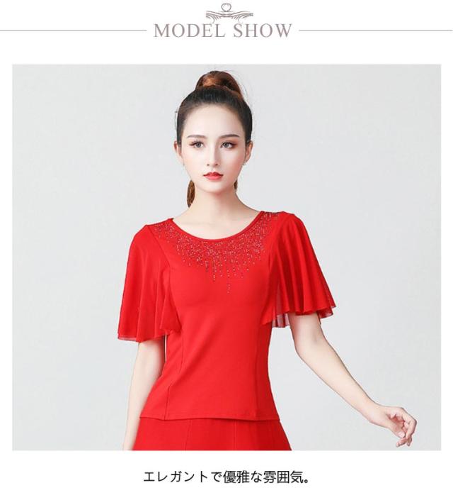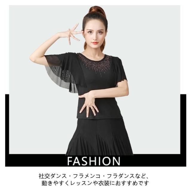 社交ダンス トップス フリル スリーブ フリル袖 ラテンダンス フラメンコ 衣装 コーラス衣装 スパンコール 練習着 シースルー 発表会 団体演出服 発表会 パーティー お呼ばれ 練習 レッスン ダンスウェア