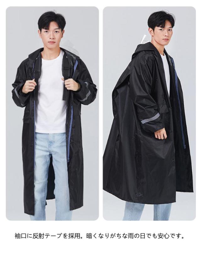| ・男女兼用リュック対応レインコート ・リュックを背負ったままでも着用できる背マチ付き♪荷物が濡れる心配がなく安心。 ・スタイリッシュに羽織れるロング丈タイプ ・フードは顔が濡れにくく、視界が広い透明のツバが付いています。 ・フロントはファスナーとスナップボタンで雨の侵入をより防ぐ。 ・便利なポケット付きです。 ・袖口に反射テープを採用。暗くなりがちな雨の日でも安心です。 | |