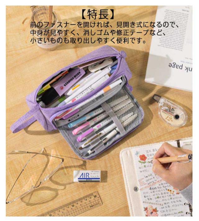 | 【大容量】ペン類が約50本入る大容量デザイン。消しゴム、付箋、ハサミ、定規、メジャー、修正テープなどの小物もたっぷり収容できます。 ※収容数はペンの種類によって異なります。 【特長】前のファスナーを開ければ、見開き式になるので、中身が見やすく、消しゴムや修正テープなど、小さいものも取り出しやすく便利です。ふせんや定規などを分けて収納できるポケットがついています。 筆記具などと分けて収容できるので、小物が探しやすく汚れにくいので安心です。 【丈夫な素材】高品質の素材を採用で、耐久性があり、清掃しやすく、耐摩耗性に優れたペンケースですし、筆箱内部の物をちゃんと守ります。 毎日の生活に大活躍!【持ち運びに便利】持ち手が付いているので持ち運びにも便利で、バッグなどからの取り出しにも便利です。 【ペンケース以外の用途にも便利】 女性には化粧ポーチとしても有効活用可能。いつも携帯するUSBメモリやスマートフォンの携帯充電器の機器類にも。常備薬や目薬、塗り薬などちょっとした小物入れにも。多様に利用できて用途は広がります。 【贈り物として】これは、女の子、息子と娘、若者と大人、作家とアーティストへの卒業、誕生日プレゼント、学校や旅行用品への贈り物として最適です。 保護スリーブにのみ使用され、鉛筆や付属品は含まれません。 | |