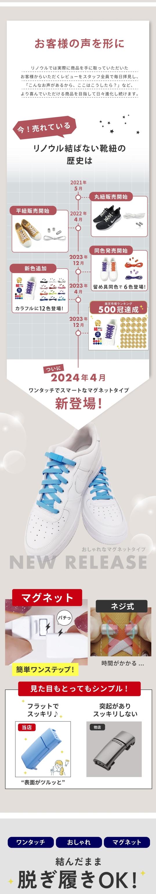 結ばない靴紐 平紐 ほどけない 結ばない マグネット式 ランニング 軽量 安全グッズ スポーツ マラソン ウォーキング アウトドア 通勤 通学 ペット 散歩 事故防止 リノウル