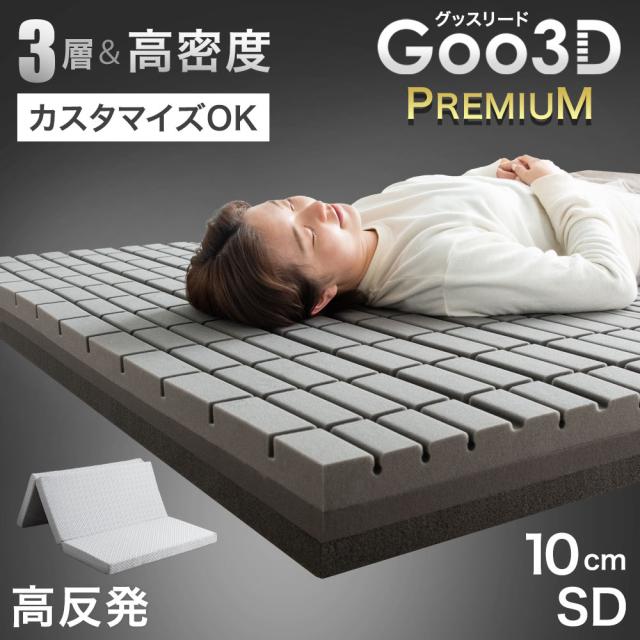 【正午〜P5%還元】 3層&高密度 寝心地カスタム 高反発 Goo3D《グッスリード》プレミアム マットレス セミダブル 3つ折り 10cm厚 高反発マットレス メッシュ ニット 洗えるカバー マットレス 折りたたみ 敷布団 敷き布団 寝具 高反発 ベッドマット 布団 体圧分散
