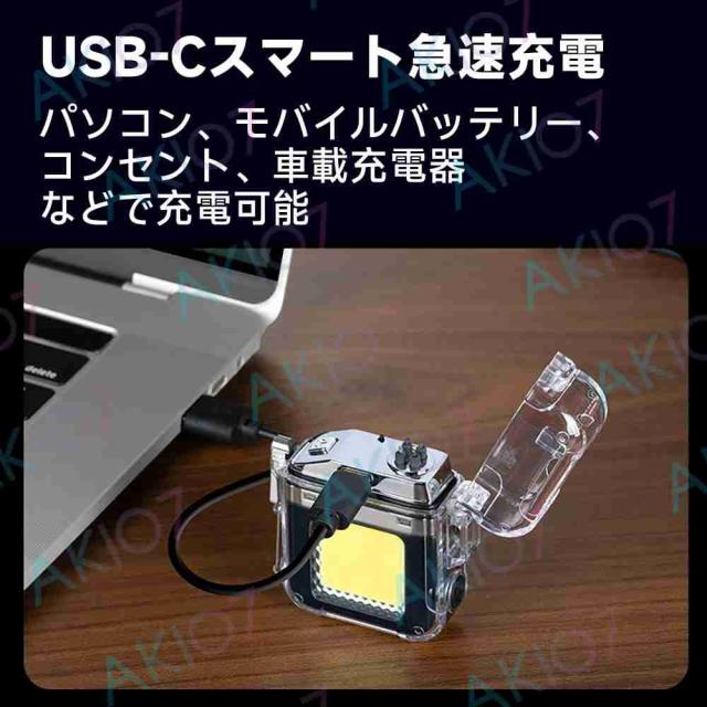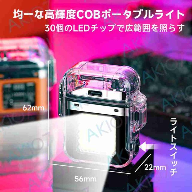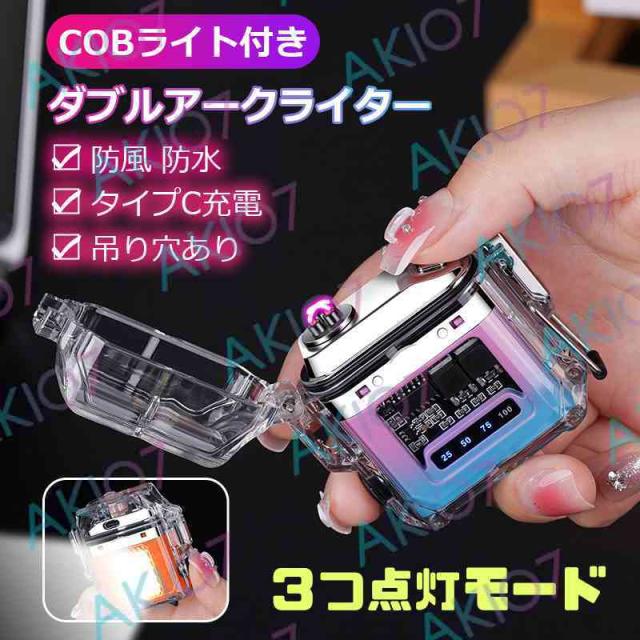 【COBライト付き】電子ライター ダブルアークライター タイプC充電 3つ点灯モード 小型 防風 防水 電池残量表示 LED投光器 吊り穴あり コンパクト 父の日