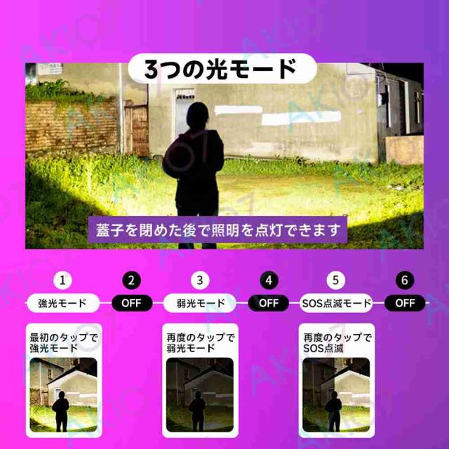 【LED投光器】高強度COBポータブルライトで、30個のLEDチップがあり、広い範囲を照らすことができ、強光、弱光、点滅の3つの点灯モードがあります。