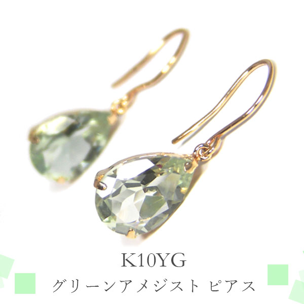 グリーン アメジスト ドロップ フック ピアス K10YG 10k 10金 イエロー ゴールド 雫 ペアシェイプ