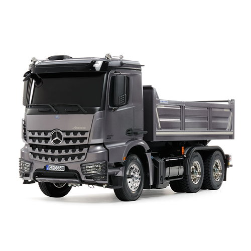 2013年から導入された同社のヘビーデューティートラックシリーズ「アロクス」の中で、480馬力の排気量12.8リッター直6ターボエンジンを搭載した後2軸駆動のダンプトラック、アロクス3348 6×4を再現した電動RCカー組み立てキットです。