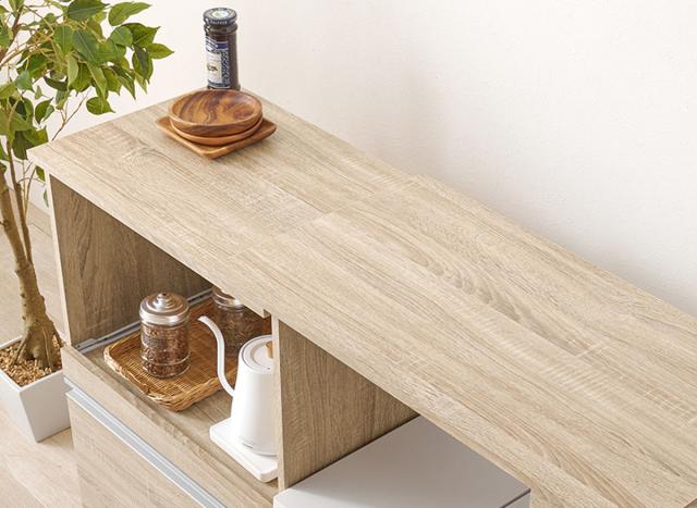 | 材質 | 主材:プリント紙化粧パーティクルボード 天板、スライド棚:合成樹脂化粧パーティクルボード 取手:スチール |