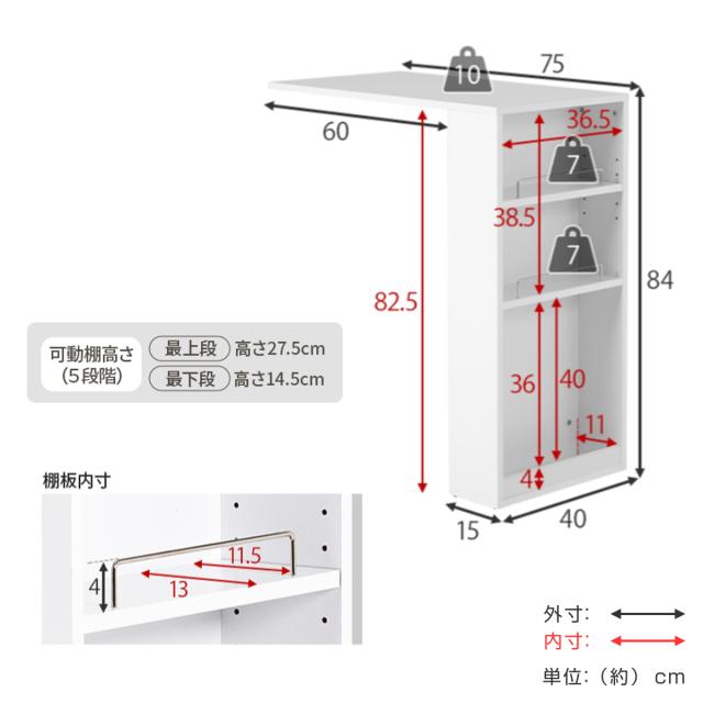 | 耐荷重 | スライド棚:10kg 収納庫:30kg |