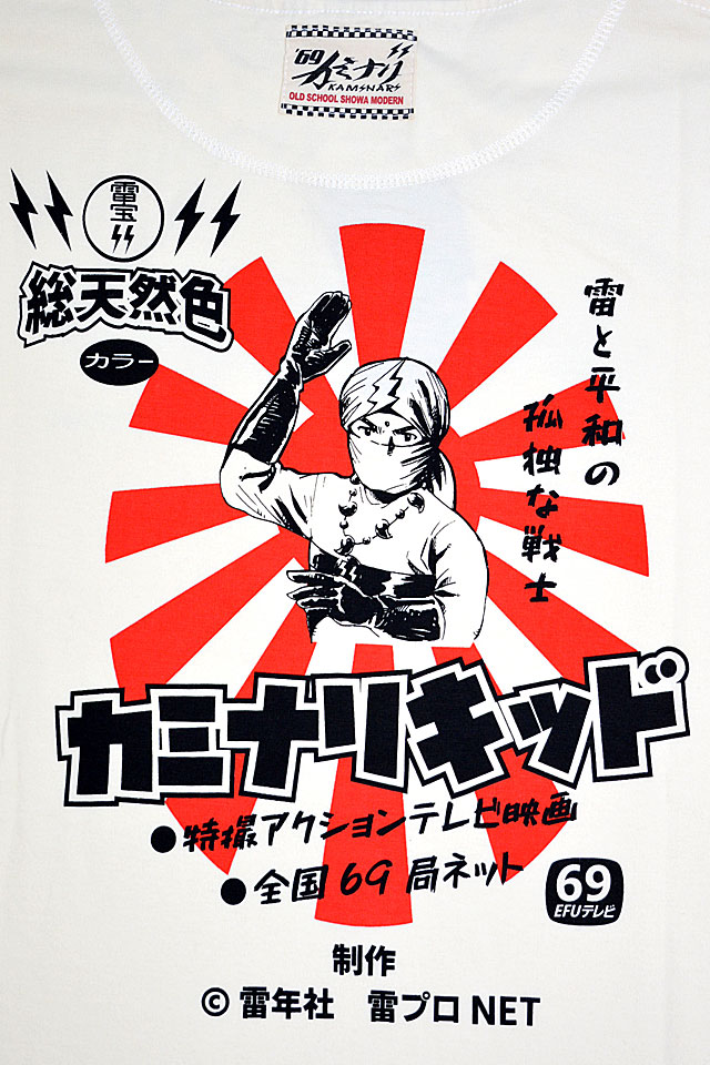 雷と平和の孤独な戦士「カミナリキッド」をモチーフにした半袖Tシャツです。