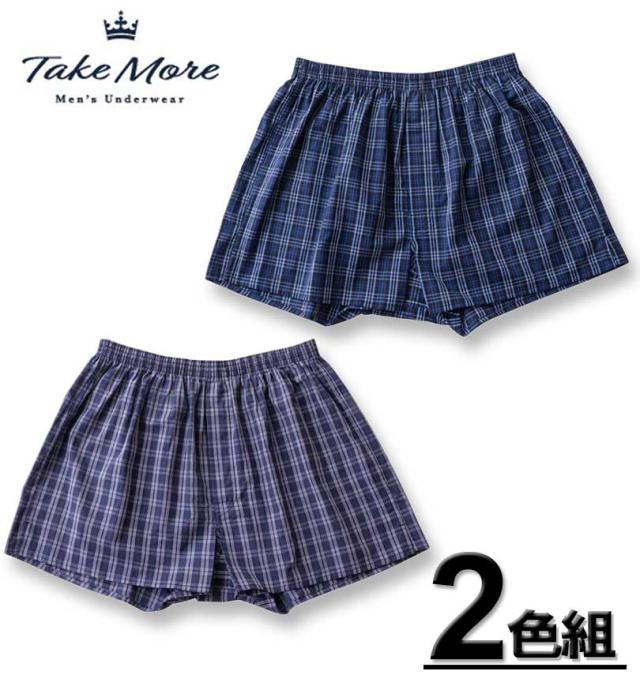 大きいサイズ Take More 2P 先染めチェック 布帛 トランクス ネイビー系×パープル系 3L 4L 5L 6L 8L/1249-4230-1-27