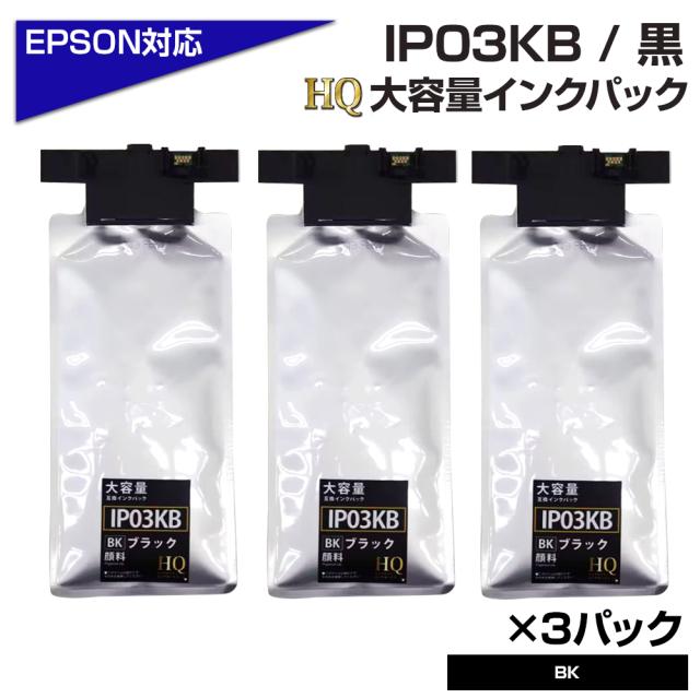 【純正同等品質】IP03KB ブラック 黒×3パック 【顔料】 大容量 ×3パック 単品 エプソン 用 互換 インク パック IP03 PX-M380F / PX-M381FL / PX-S380 / PX-S381L 送料無料