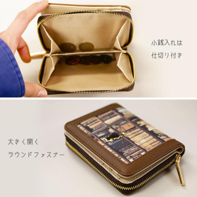 神保町にゃんこ堂 財布 サイフ 二つ折り 2つ折り 札入 猫 ねこ ネコ ラウンドファスナー 雑貨 姉川書店 レディース 高校生 大学生 OL ミセス 主婦 ママ 猫雑貨 猫柄 合皮 アンティーク風 おしゃれ かわいい 人気 誕生日プレゼント 猫好き nds0013-23