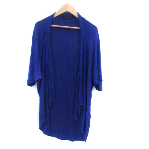 【中古】グリーンレーベルリラクシング ニットカーディガン 五分袖 ドルマンスリーブ 前開き 青 レディース