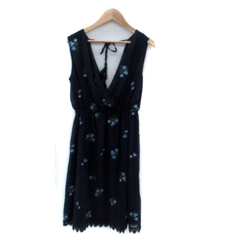 【中古】マーキュリーデュオ ワンピース カシュクール ノースリーブ バックシャン ひざ丈 花柄刺繍 F 紺 レディース