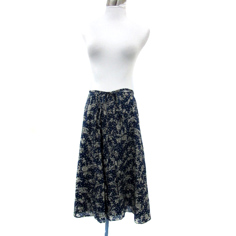 【中古】ルージュヴィフ フレアスカート ギャザースカート 花柄 ドット柄 リボンベルト付き 2 紺 ベージュ レディース