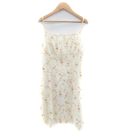 【中古】アリスバーリー キャミソールワンピース スクエアネック ひざ丈 花柄 ベージュ オレンジ レディース
