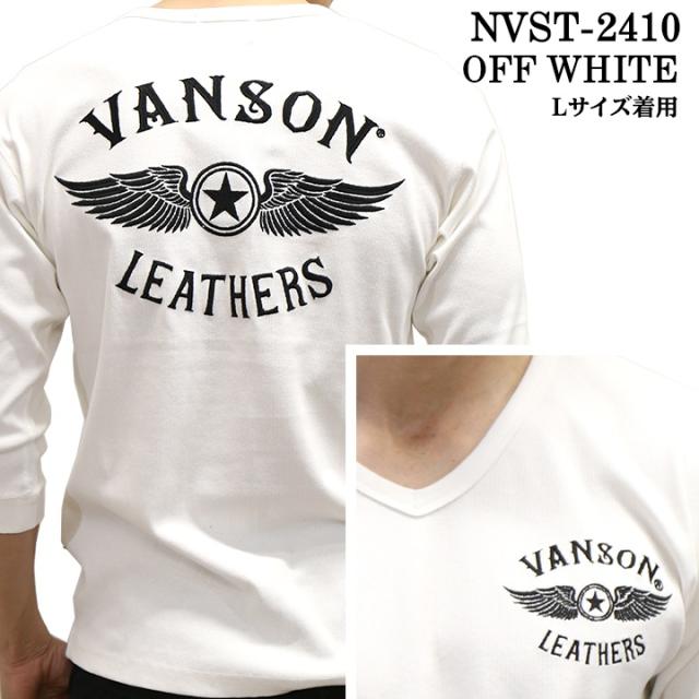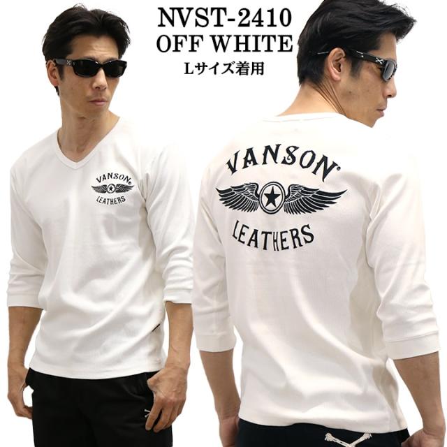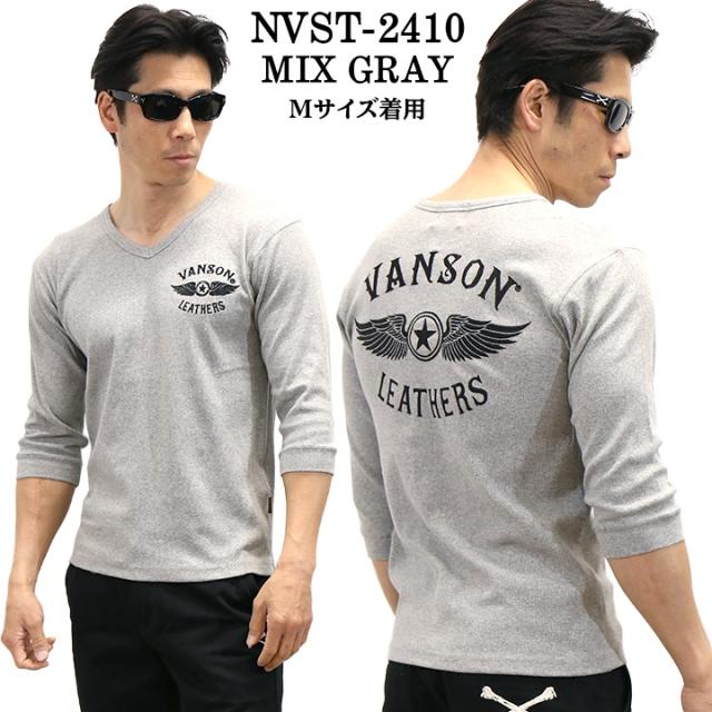 VANSON バンソン テレコ Vネック 6分袖Tシャツ nvst-2410