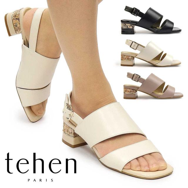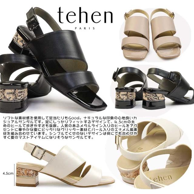 テーン レディース サンダル TN1794 ローヒール 太目ヒール メタルライン エレガント カジュアル シンプル tehen