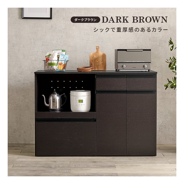 萩原 (ハギハラ) キッチンカウンター 収納庫タイプ VKC-7156 幅118cm 2口コンセント付 ダークブラウン VKC-7156DBR