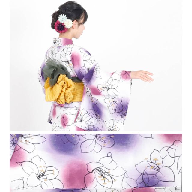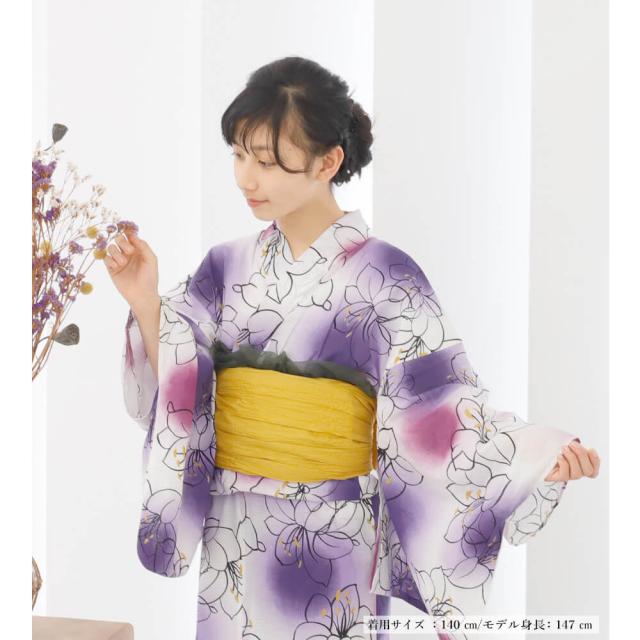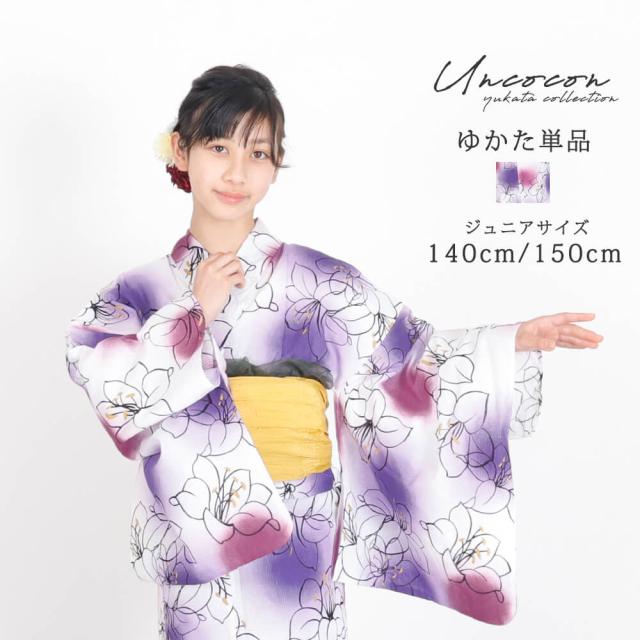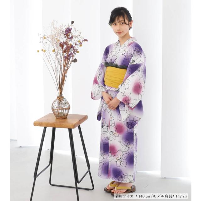 子供浴衣 単品 ジュニア ジュニア浴衣 子供 浴衣 女の子浴衣 140 150 レトロ お洒落 パープル 百合 グラデーション