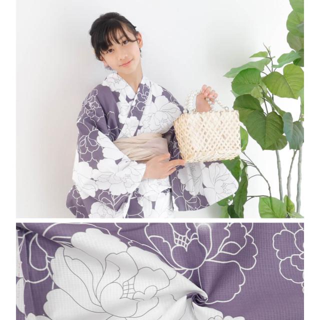 子供浴衣 単品 ジュニア ジュニア浴衣 子供 浴衣 女の子浴衣 140 150 160 レトロ お洒落 ホワイト パープル 百合