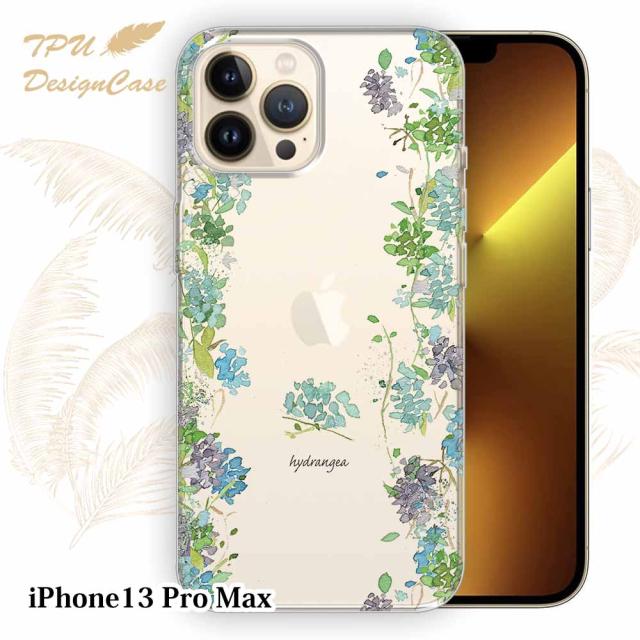 【14時までの注文で当日発送】 iPhone13 Pro Max ソフトケース TPU クリアケース 透明 アイフォン13プロマックス ケース おしゃれ カラフル かわいい 花 花柄 あじさいロード