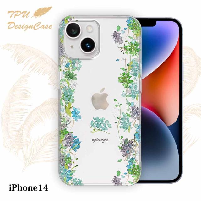 【14時までの注文で当日発送】 iPhone14 ソフトケース TPU クリアケース 透明 アイフォン14 ケース おしゃれ カラフル かわいい 花 花柄 あじさいロード