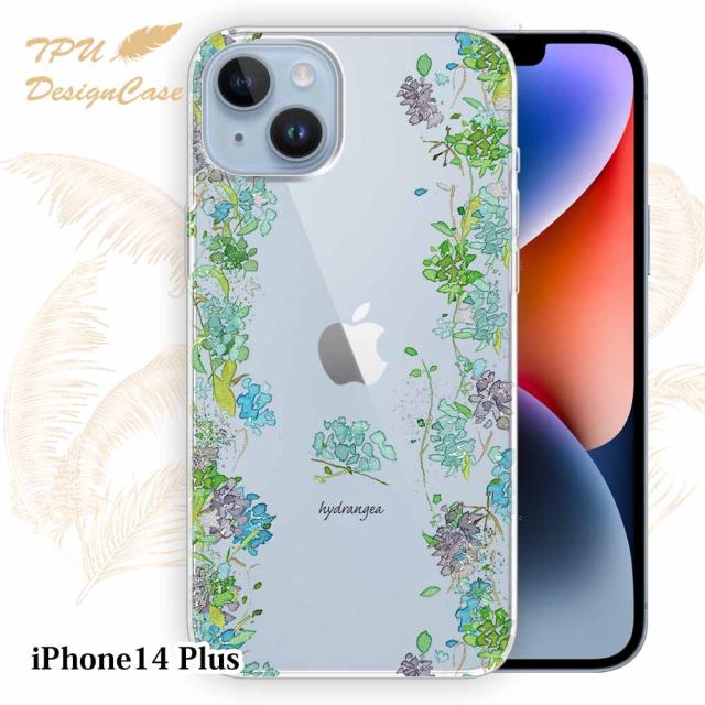 【14時までの注文で当日発送】 iPhone14 Plus ソフトケース TPU クリアケース 透明 アイフォン14プラス ケース おしゃれ カラフル かわいい 花 花柄 あじさいロード