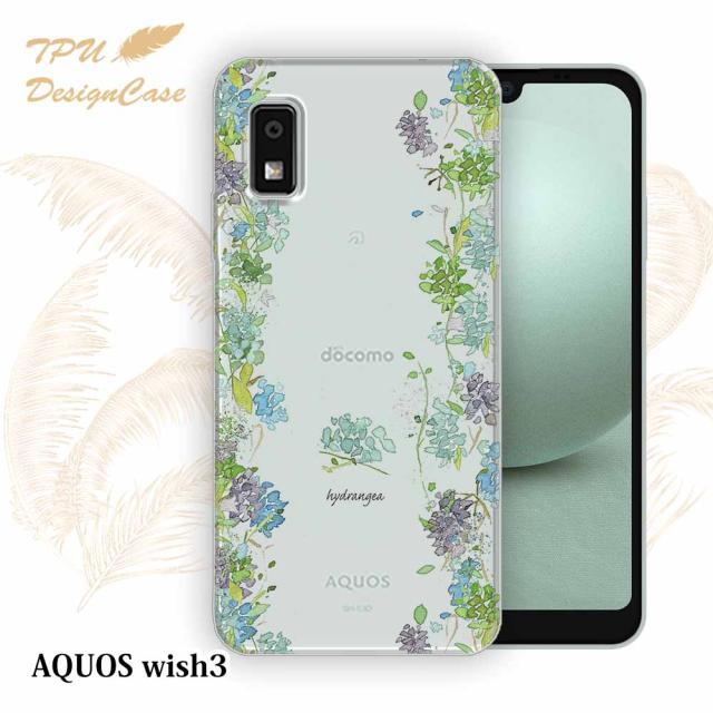 【TPUケース】 AQUOS wish3 SH-53D / A302SH ソフトケース TPU クリアケース 透明 アクオス ウィッシュ3 ケース おしゃれ カラフル かわいい 花 花柄 あじさいロード