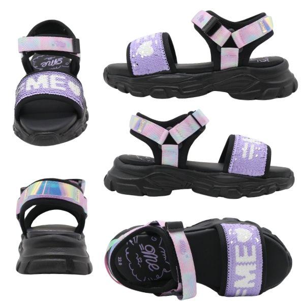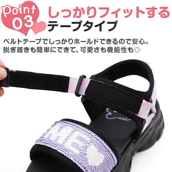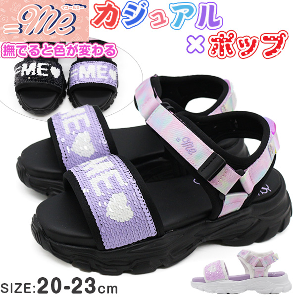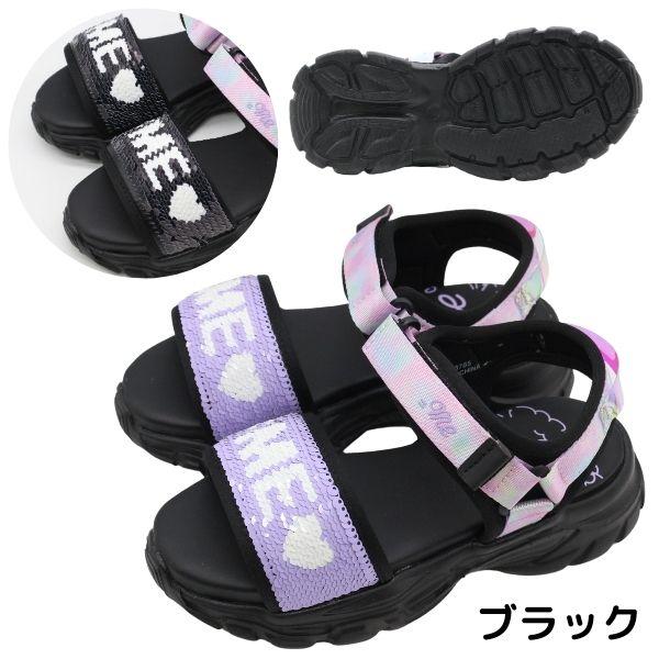 サンダル キッズ ジュニア 子供 靴 女の子 黒 ブラック スポーツサンダル スポサン 韓国系 トレンド 人気 おしゃれ かわいい 女の子 厚底 美脚 マジックテープ スパンコール カジュアル スポーティ 夏 小学生 中学生 ティーン イコール ME イコールミー ME-3705