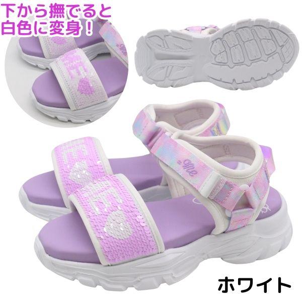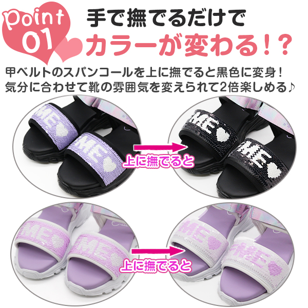 甲ベルトを撫でると色が変わるオシャレなガールズサンダルです。