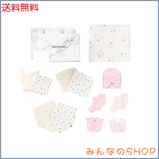 【ギフトセット内容】ベビー帽子×1、ベビーミトン×2、ベビー靴下×2、スタイ×2、ガーゼハンカチ×4、おくるみ×1、メッセージカード×1、ギフトボックス&手提げ袋×1