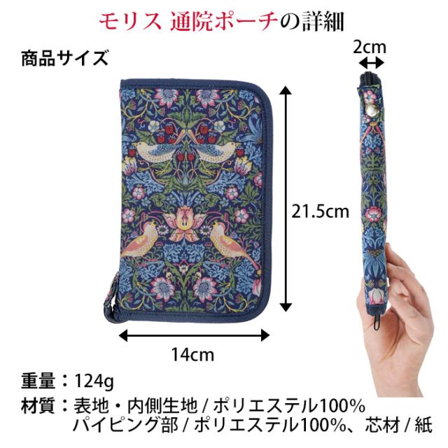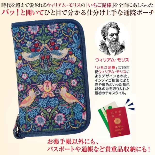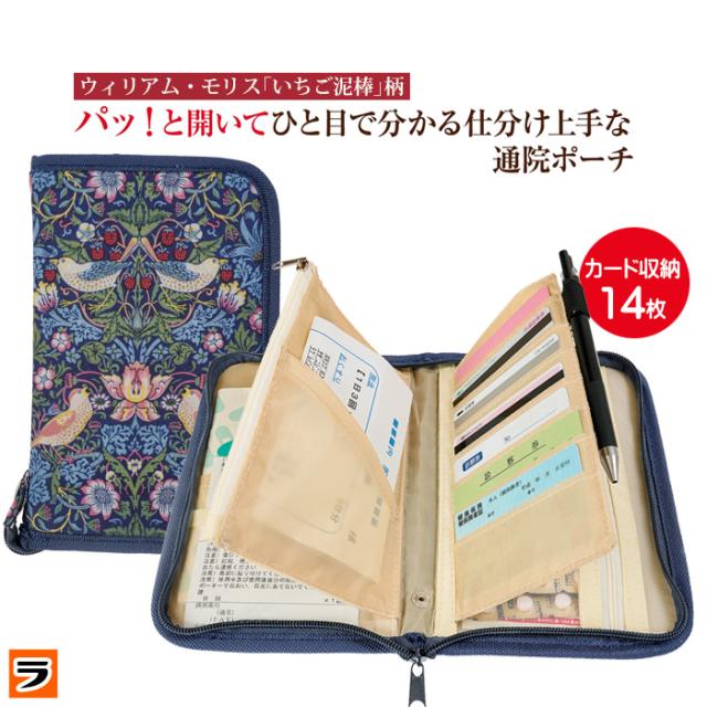 モリス 通院ポーチ 通院ケース おしゃれ ウィリアムモリス いちご泥棒 モリス柄 ファスナー付き パスポートケース 貴重品 ポーチ 通院ウォレット 診察券入れ トラベルウォレット 診察券 お薬手帳ケース 保険証入れ 通帳ケース カード入れ マルチケース