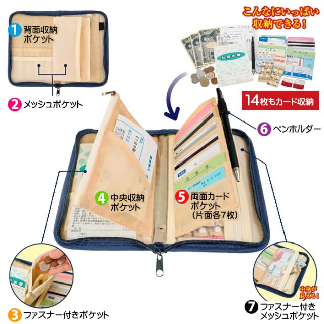カードポケットがついておりカードや診察券はもちろんのこと、