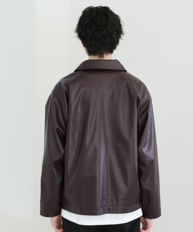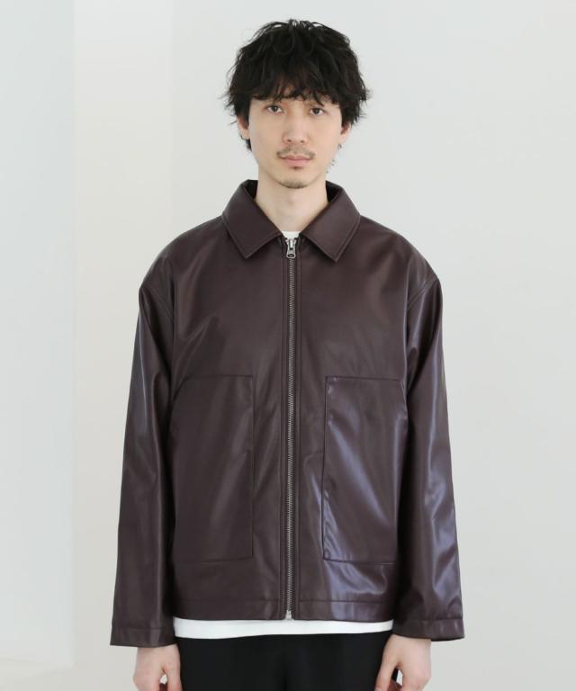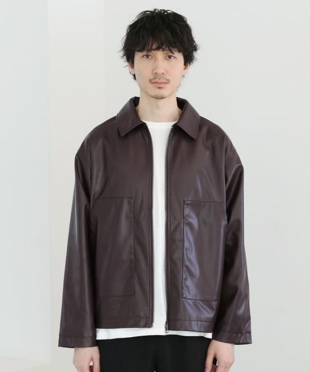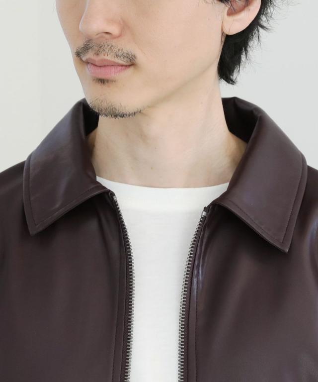 しっかりと厚みを感じられながらも、しなやかで柔らかさのある質の高いPUレザーを使用したジップアップブルゾン。定番のライダースジャケットではなく、着こなしに新鮮さを与える襟付きのジップアップとしてご提案いたします。