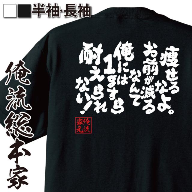 【 おもしろ プレゼント 】おもしろtシャツ 俺流総本家 魂心Tシャツ 痩せるなよ。お前が減るなんて俺には1gすら耐えられない!【デブ ダイエット キザ おもしろ雑貨 漢字 文字Tシャツ おもしろ プレゼント 面白 メッセージtシャツ 文字tシャツ 長袖 大き】