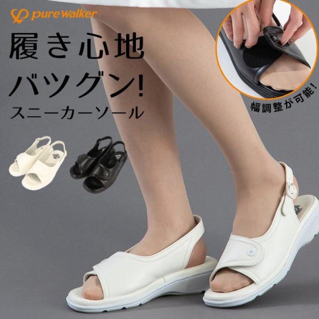サンダル レディース 黒 歩きやすい 疲れない 軽量 エアークッション ナースサンダル ピュアウォーカー PW8501 シューズ 靴