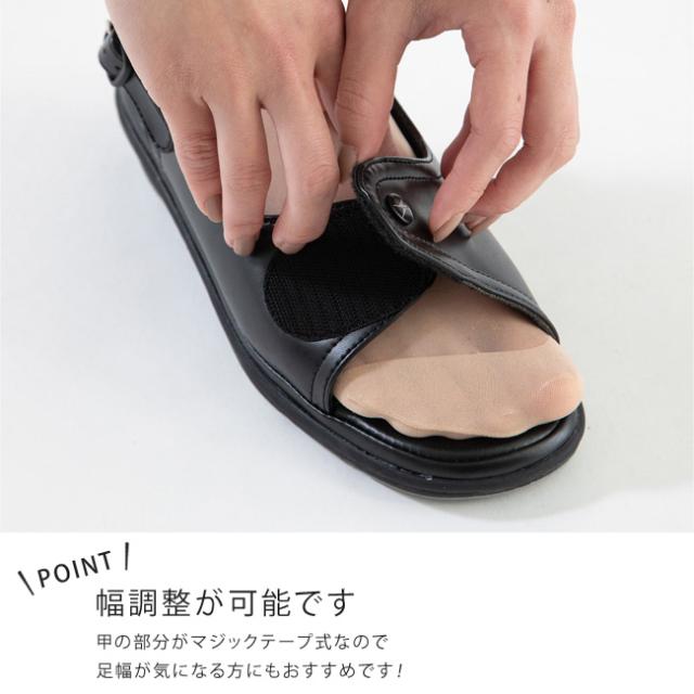 足の形に合わせてサイズ調整出来るから、夕方に足がむくんでも安心です。