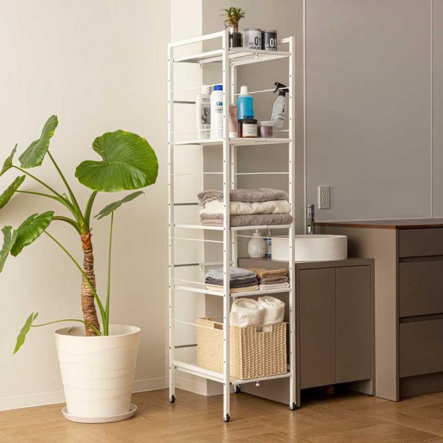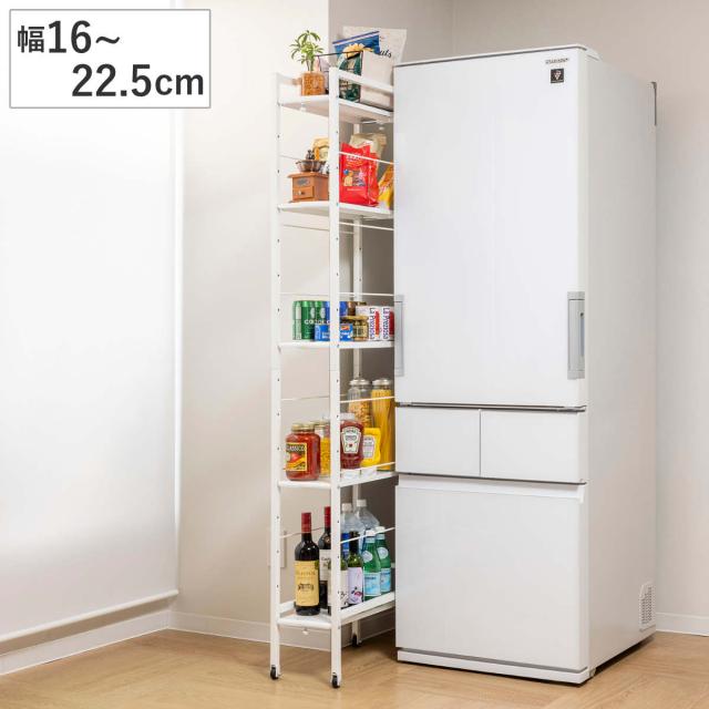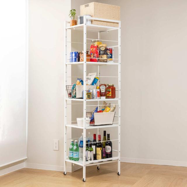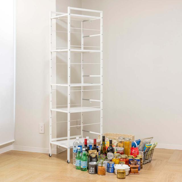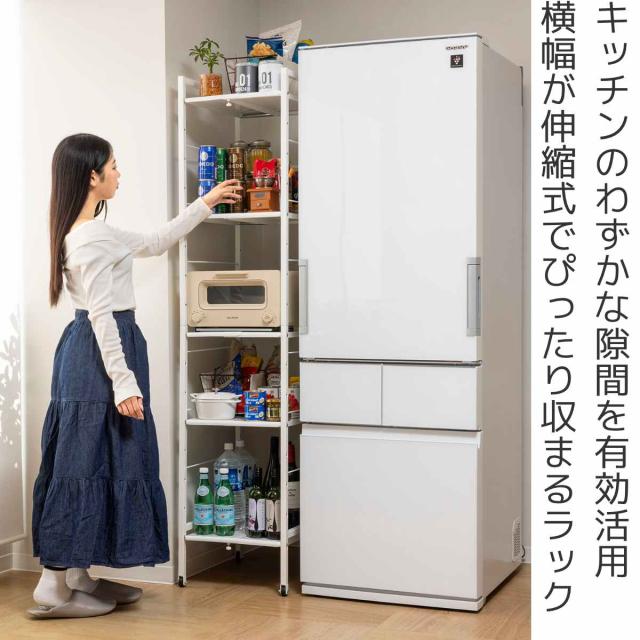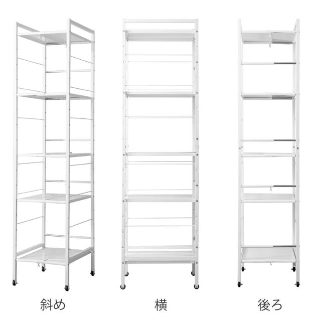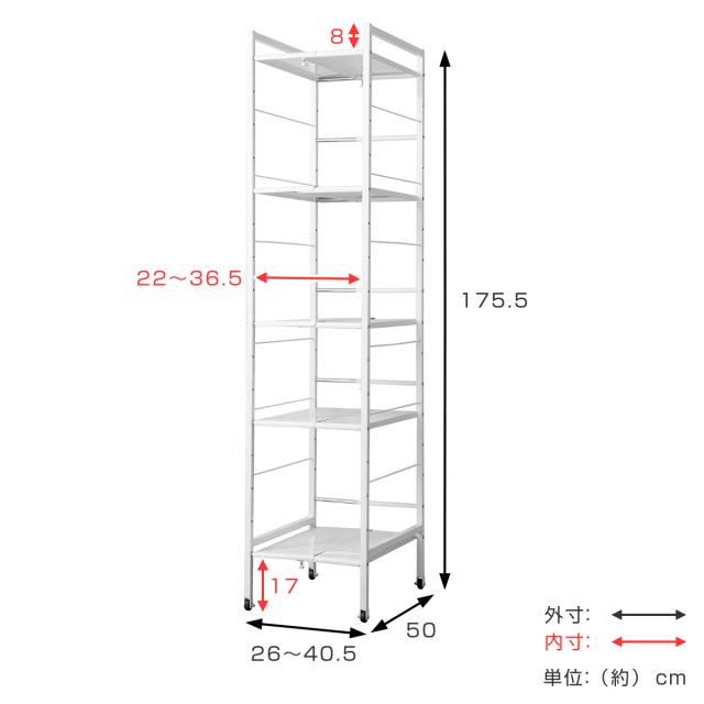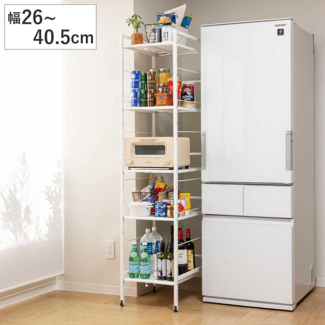 キッチンのデッドスペースを有効活用できるラックです。横幅が26〜40.5cmまで伸縮するので、トースターなどの家電も置くことができます。高さ175.5cm、奥行は50cmでたっぷり収納できます。キッチンだけでなく洗面所でタオルを収納するのにもぴったりです。キャスター付きで引き出しやすいのも嬉しいポイントです。