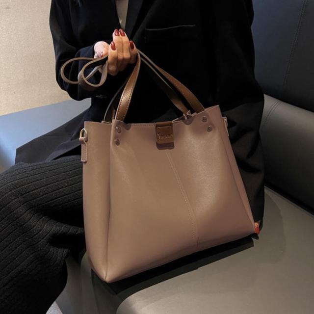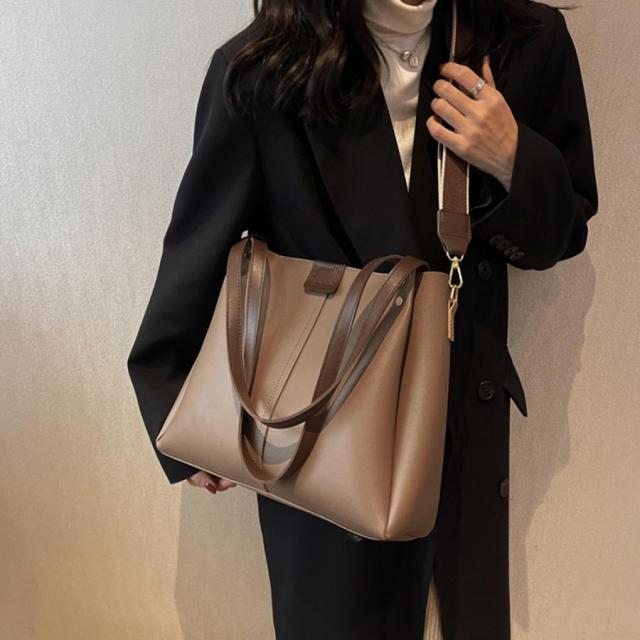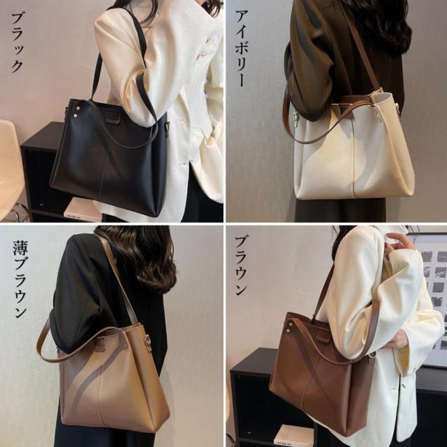 ショルダーバッグ 大容量 トートバッグ シンプル フェイクレザー 肩掛けバッグ 通勤 オフィスカジュアル PUレザー 手提げかばん 2WAY 合皮鞄 斜めがけ